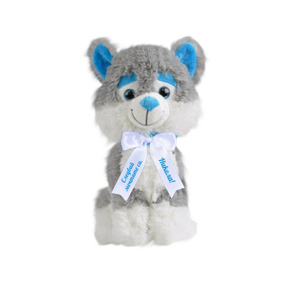Плюшено куче с надписана панделка