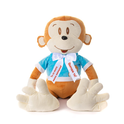 Плюшена маймуна с надписана панделка, кафява, 100 см