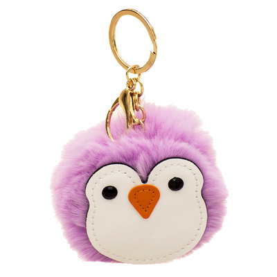 Ключодържател пингвин с пухче в лилаво