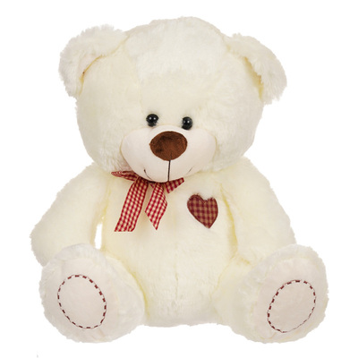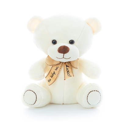 Плюшено мече с надписана панделка, екрю, 40 см