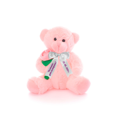 Плюшено мече "Smile on" в розово с надписана панделка