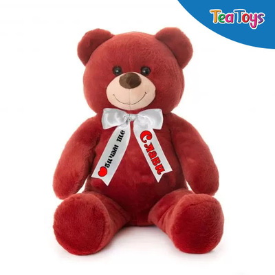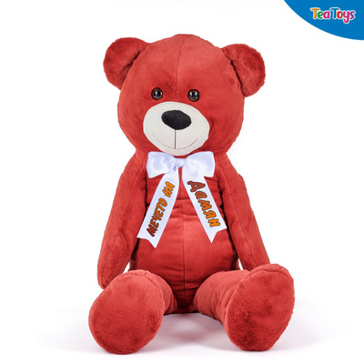 Плюшено мече в бордо с надписана панделка, 130 см.