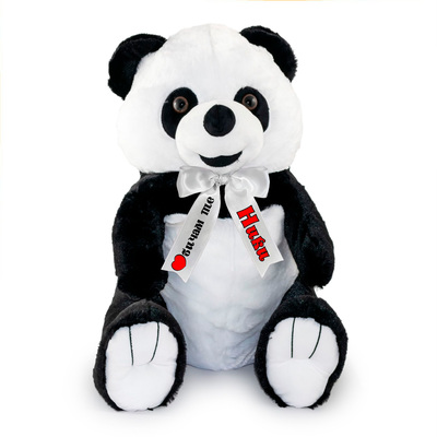 Плюшена панда с надписана панделка, 30 см