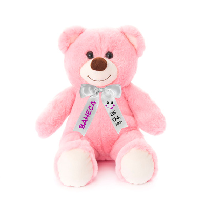 Плюшено мече с надписана панделка, розово, 37 см