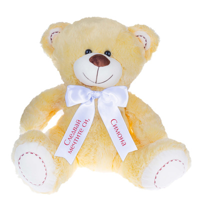 Плюшено мече в бежаво с надписана панделка