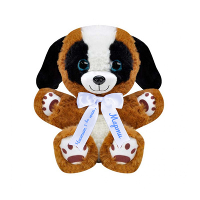 Плюшено куче с надписана панделка, кафяво, 28 см
