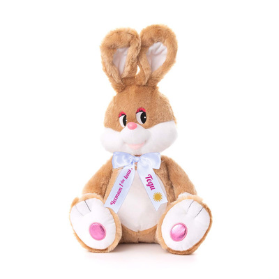 Плюшено зайче с надписана панделка, кафяво, 45 см
