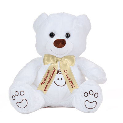 Плюшено мече Smile on с надписана панделка, екрю, 32 см