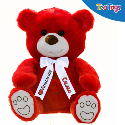 Плюшен мечок в червено с надписана панделка, 200 см