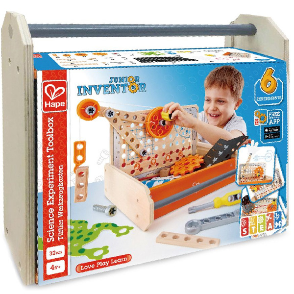 Игрален комплект, Hape, Дървена кутия с инструменти, Млад изобретател, 32 части