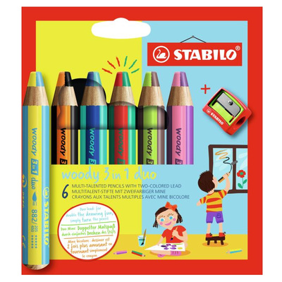 Комплект цветни моливи, Stabilo, Woody 3 в 1 Duo, 6 цвята + острилка
