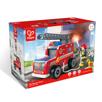 Дървен комплект, Hape, Пожарна кола, 4 части