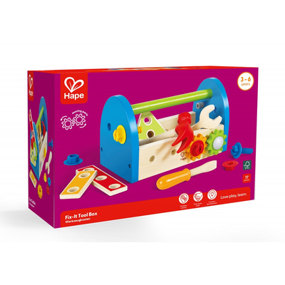 Дървен комплект, Hape, Кутия с инструменти, 17 части
