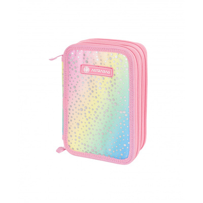 Ученически несесер, Astra, Jumbo AC31, Rainbow Dust с хром ефект, С аксесоари, 20,5 x 13 x 6 см