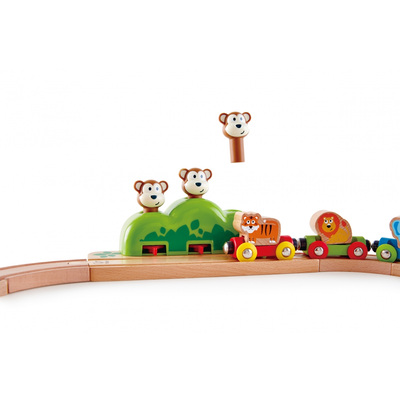 Дървен комплект, Hape, Релси с изскачащи маймунки