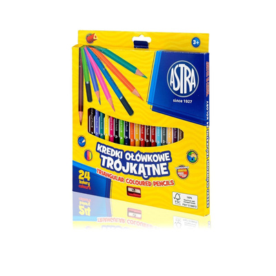 Комплект цветни моливи, Astra, Tриъгълни, 24 цвята с острилка