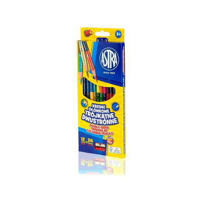 Комплект цветни моливи, Astra, Триъгълни двустранни, С острилка, 12 бр., 24 цвята