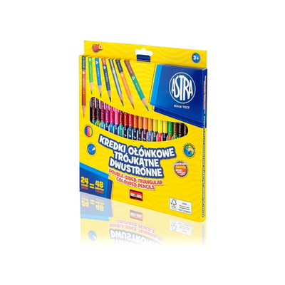 Комплект двустранни триъгълни цветни моливи, Astra, С острилка, 24 бр., 48 цвята