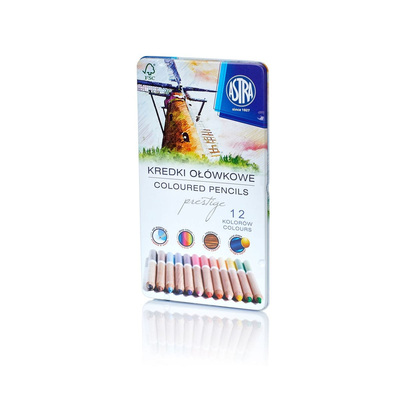 Комплект цветни моливи от кедрово дърво, Astra, Престиж, В метална кутия, 12 цвята