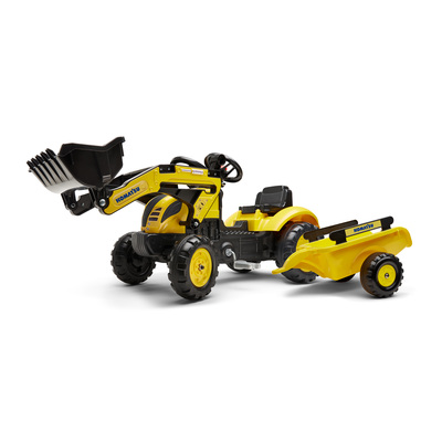 Детски трактор с едно гребло, ремарке, отварящ се капак и педали - зелен