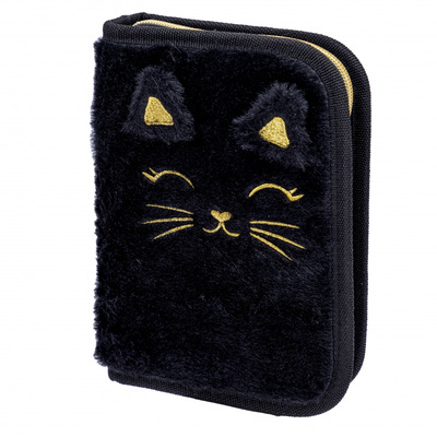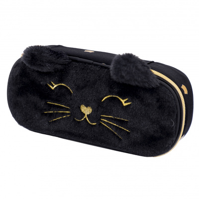 Единичен несесер без аксесоари, Astra, Пухкаво черно коте, AC11, 22 x 9 x 5 cm