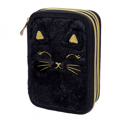 Троен несесер с аксесоари, Astra, Пухкаво черно коте, AC31, 20.5 х 13 х 6 см