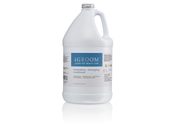 iGroom Deshedding + Detangling Conditioner е професионален балсам, специално формулиран да намали линенето и да улесни разресването на гъста или двойна козина. Богатата му формула омекотява, подхранва и предпазва от накъсване, оставяйки козината копринено гладка и обемна.