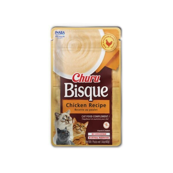Churu Bisque е апетитна и богата крем супа с финна кадифена текстура, направена само от висококачествени съставки, включително отгледано във ферма пиле и/или свободна риба тон, уловена в дивата природа.Всяка опаковка съдържа 91% влага и само 16 калории, което я прави здравословна и хидратираща добавка към храната на вашата котка.