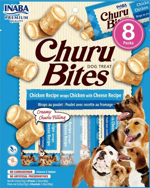Churu Bites са меки натурални пилешки лакомства във формата на хапки с кремообразен пълнеж, подправени с естествени