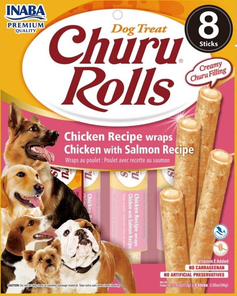 Churu Rolls са меки натурални лакомства във формата на пръчици с кремообразен пълнеж, подправени с естествени аромати, екстракт от зелен чай и витамин Е. Без зърнени храни, консерванти или изкуствени оцветители.