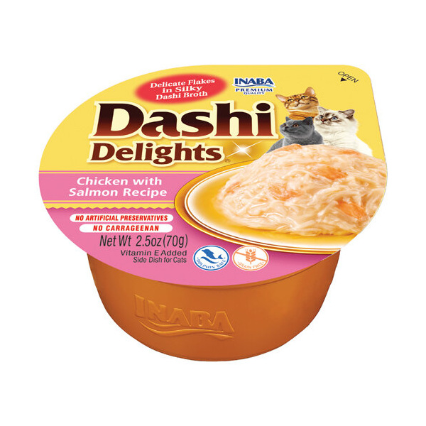 Inaba Dashi Delights Chicken with Salmon – Купичка с късчета месо и японски бульон за котка с Пиле и Сьомга 70 гр