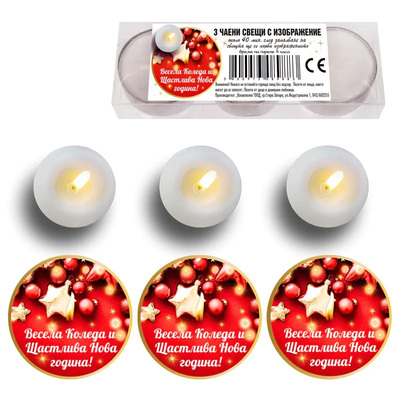 Чаени свещи с изображение Весела Коледа и Щастлива Нова Година