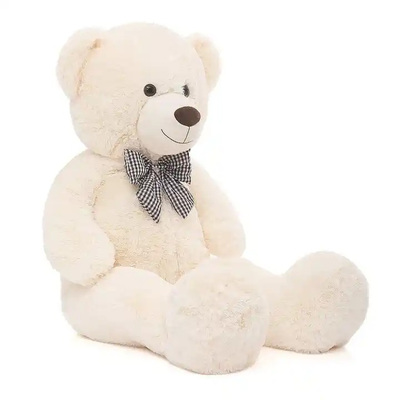 Плюшен мечок с кадифена панделка, бежов, 90 см