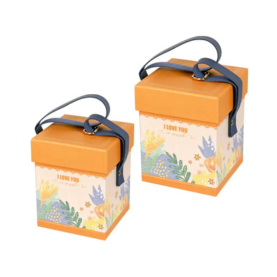 Подаръчна кутия I love you с кожени дръжки, жълта