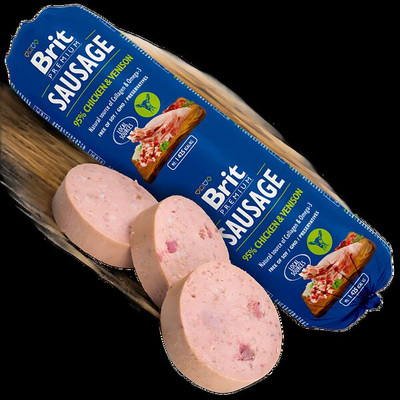 Деликатесен салам за кучета Brit Sausage Chicken&Venison – с 87% свежо пилешко месо и 8% еленско мес