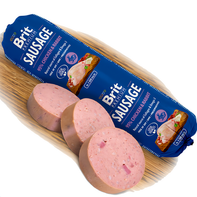 Деликатесен салам за кучета Brit Sausage Sausage Chicken & Rabbit – с 85% свежо пилешко месо и 10% з