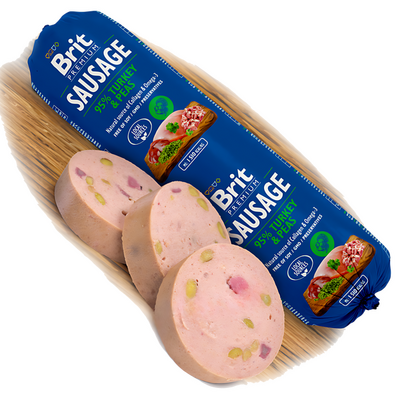 Деликатесен салам за кучета Brit Sausage Тurkey&Peas – с 95% свежо пуешко месо и 3.5% грах 800гр