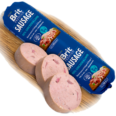 Деликатесен салам за кучета Brit Sausage Chicken & Lamb – с 85% свежо пилешко месо и 10% агнешко 800