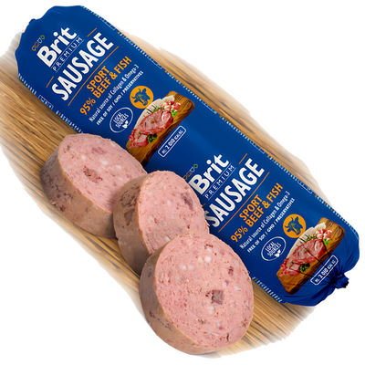 Деликатесен салам за кучета Brit Sausage Sport Beef & Fish – с 85% свежо телешко месо и 10% риба 800