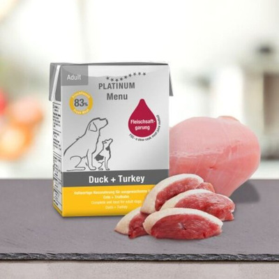 Мокра храна за кучета Platinum Menu Adult Duck + Turkey с 42% Прясно патешко месо, 41% Прясно пуешко