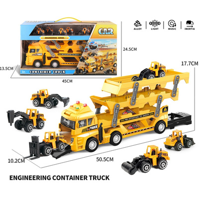 Камион Автовоз с 6 метални машини за строителство светлина и звук за игра е 51х18х10 в кутия е 45х14х25