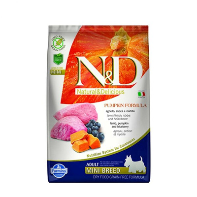 N&D Pumpkin Lamb and Blueberry Adult Mini за кучета от дребни породи с агнешко и боровинки