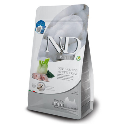 N&D White Dog Adult Mini Sea Bass, Spirulina & Fennel за кучета с бяла козина от мини породи с лав