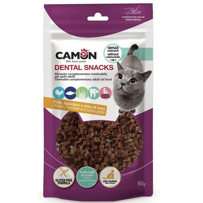 Camon Dental snack - лакомство за котки пилешко месо,скумрия и ечемична трева, 60гр.