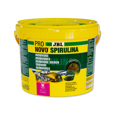JBL PRONOVO SPIRULINA FLAKES M 5.5L за растителноядни риби на люспи Spirulina размер М за рибки 8 –
