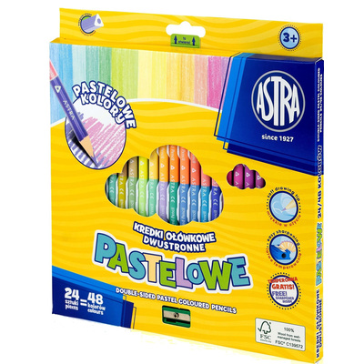Комплект цветни моливи, Astra, Триъгълни двустранни, 48 цвята, 24 броя