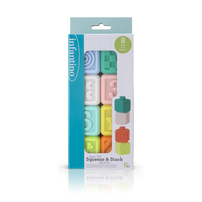 Комплект меки сензорни кубчета за подреждане, Infantino, 8 броя