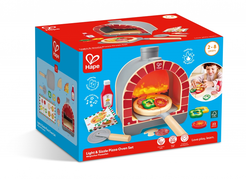 Интерактивен дървен комплект, Hape, Пещ за пица с аксесоари, 23 части