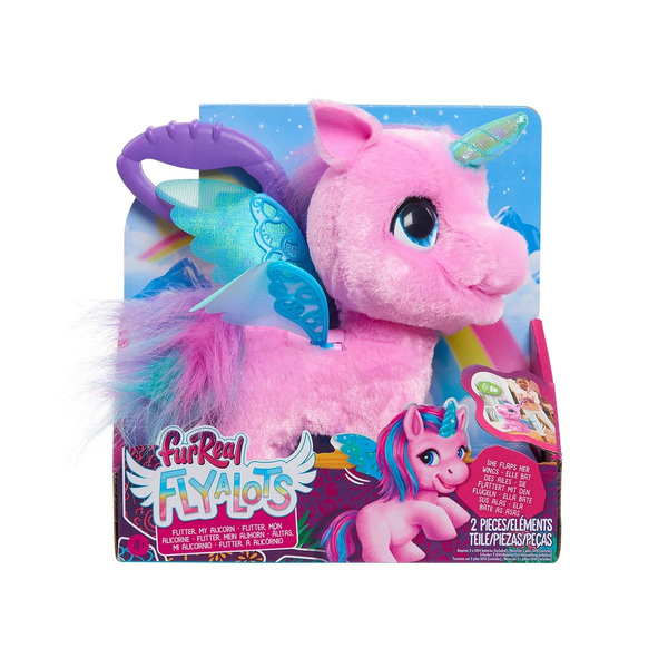Грижата за домашен любимец никога не е била по-очарователна с Еднорог с каишка furReal Walk-A-Lots интерактивна играчка. Този Еднорог с каишка не само е сладък, но и интерактивен и готов за разходка. Прикрепете включения повод към нашийника на едорога. След това, с нежно натискане, го заведете на разходка из къщата. Вдигнете повода и вижте как крилата му се размахват. След разходката децата могат да прегръщат, галят и да се грижат за своя еднорог. FurReal Walk-A-Lots са прекрасни допълнения към колекцията от плюшени играчки и други furReal Pets на всяко дете (продават се отделно). Работи с 3 x AG13 батерии (включени демо батерии). Страхотни са за деца на възраст 4 години и нагоре.