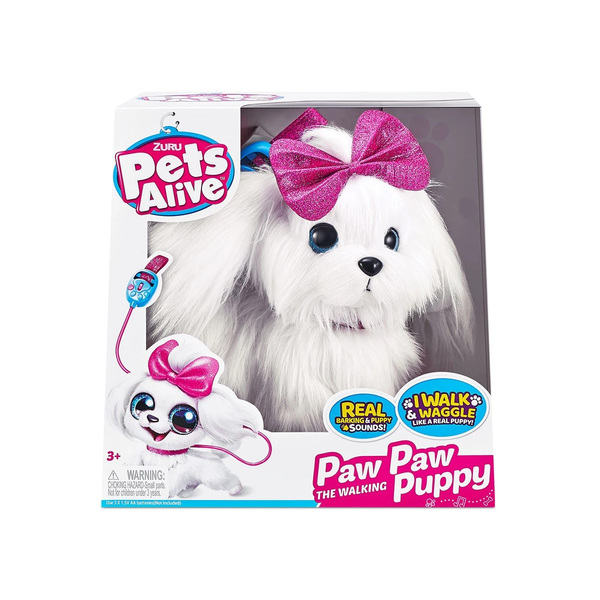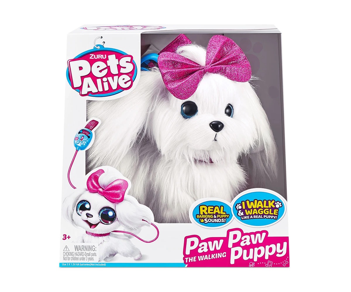 Кое е най-пухкавото, най-сладкото и най-бляскавото кученце на света? Разбира се, че е Lil' Paw Paw! Този перфектен, обичан класически дизайн с модерен привкус се присъединява към семейството на Pets Alive. Копринено гладката козина на това великолепно кученце е създадена за разресване и гушкане, а нейните блестящи сини очи блестят почти толкова, колкото идеално розовата й панделка и яка. Lil' Paw Paw върви напред, за да я покаже на всички ваши приятели! Гледайте как лае като истинско кученце! Използвайте каишката за лесно управление, за да контролирате ходенето и лаенето на Lil' Paw Paw.